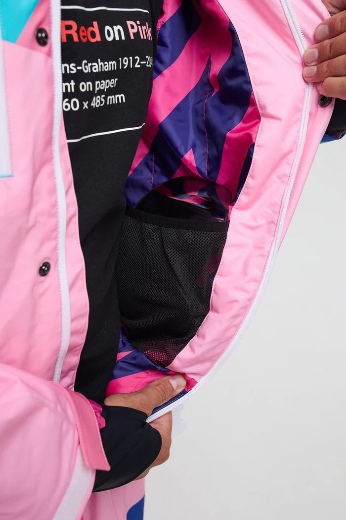 Sustainable & Stylish: Made using recycled polyester sourced from plastic bottles, OOSC shaped ski suits combine sustainability with head-turning, retro-inspired prints and vibrant colourways